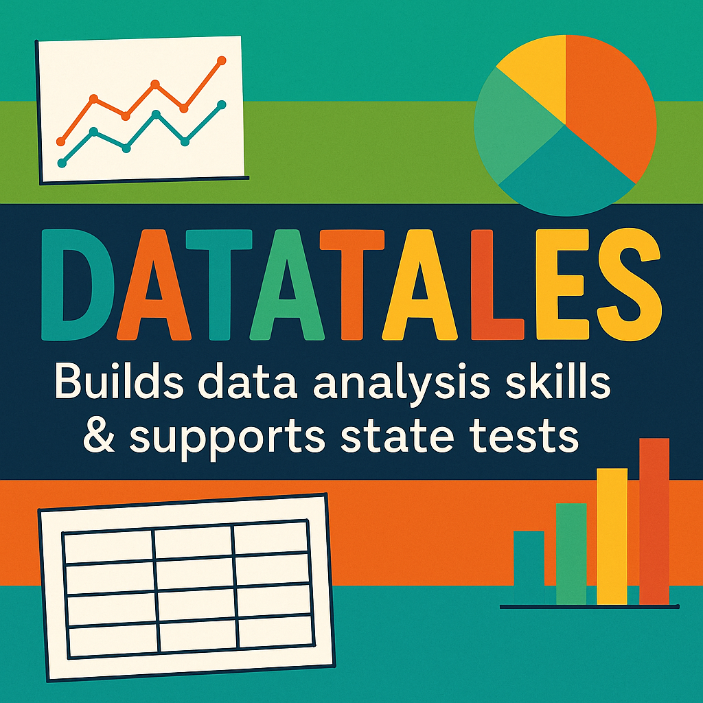 DataTales uses your science standards to create short, high-interest stories paired with real graphs or data tables. Each card helps students read, interpret, and analyze data—building the same literacy and reasoning skills measured on state tests. Perfect for bellringers, warm-ups, or station rotations, DataTales makes science practice engaging, relevant, and easy to teach.